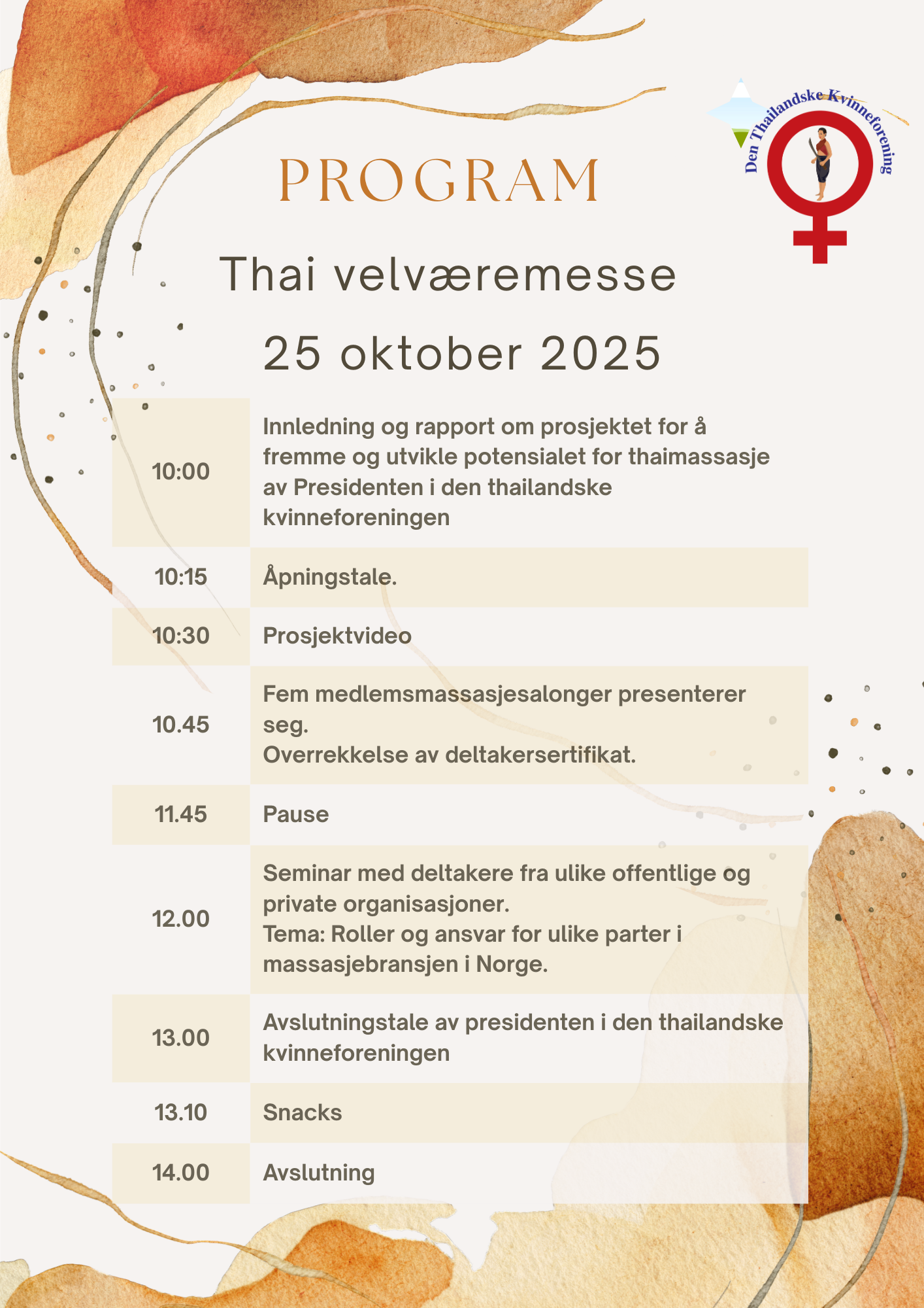 Et seminar for å fremme seriøs thaimassasje som en legitim helse- og velværepraksis, med fokus på opplæring, etikk og samarbeid med myndigheter. Thaimassasje, kjent som Nuad Thai, er anerkjent av UNESCO som en del av den immaterielle kulturarven siden 2019, og representerer en tradisjonell helsepraksis som er noe helt annet enn de negative assosiasjonene den ofte får i Norden i dag. Atlas Helse, som tilbyr komplette kurs i thaimassasje, bidro som medarrangør, ved daglig leder Wannipa Wipatothai, for å understreke viktigheten av faglig kompetanse i bransjen.
